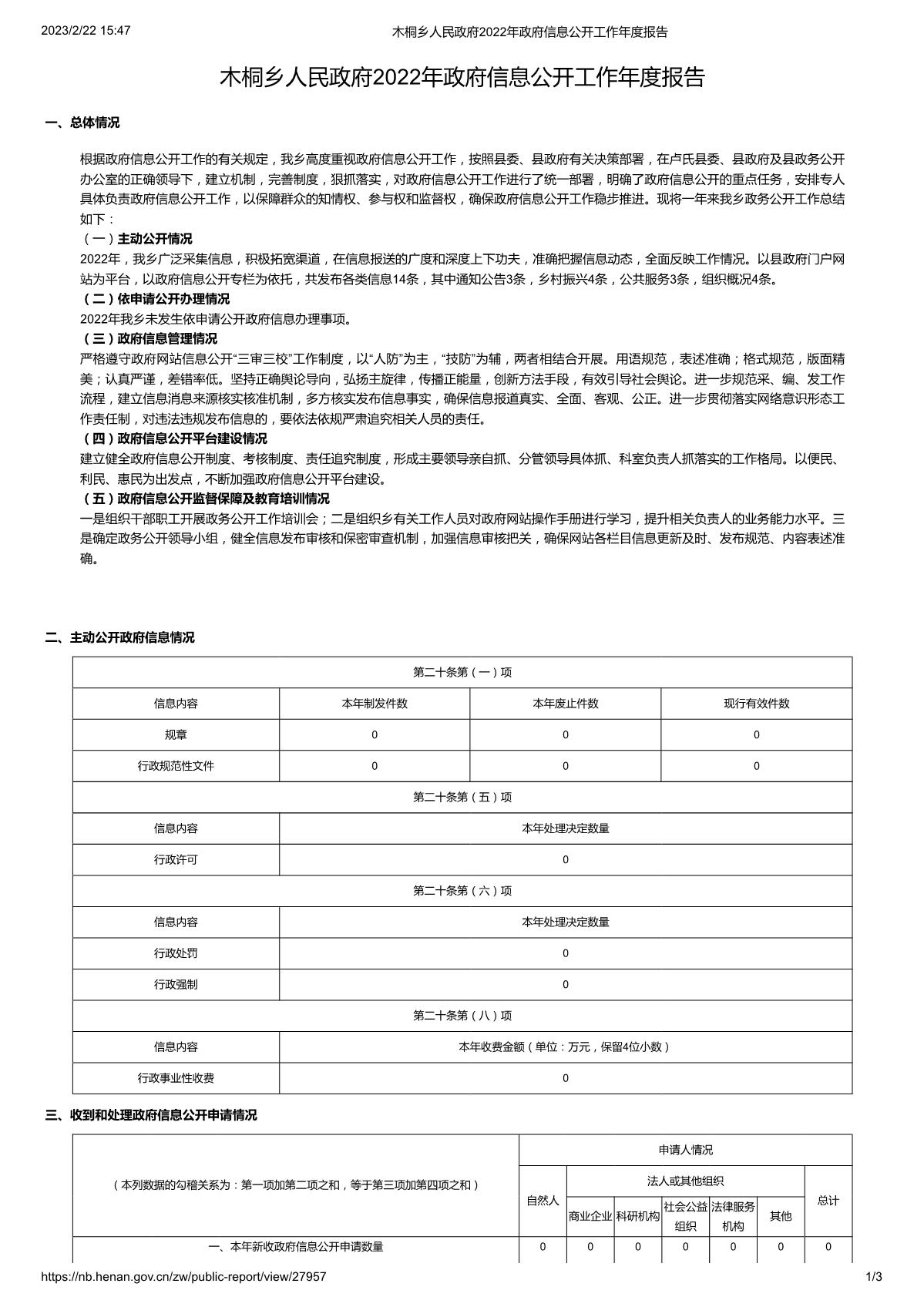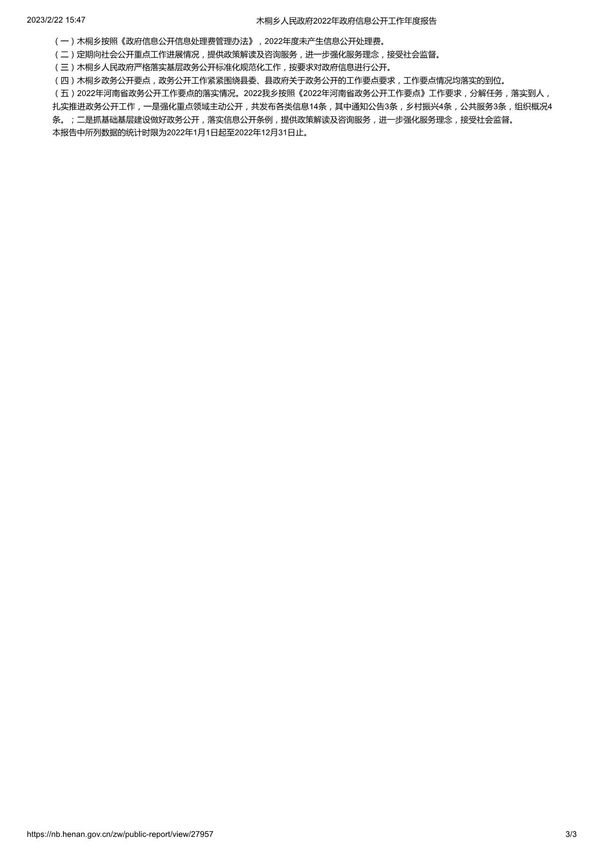 木桐乡人民政府2022年政府信息公开工作年度报告