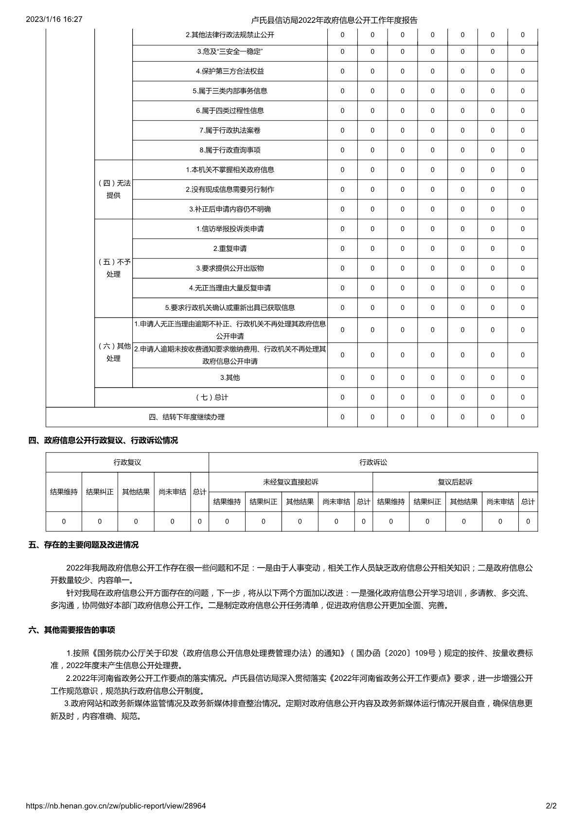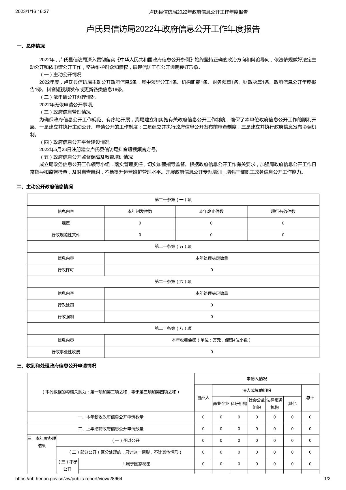 卢氏县信访局2022年政府信息公开工作年度报告