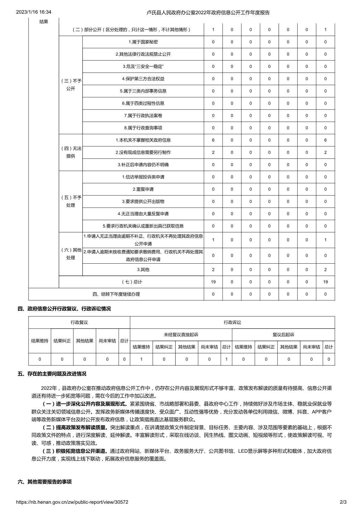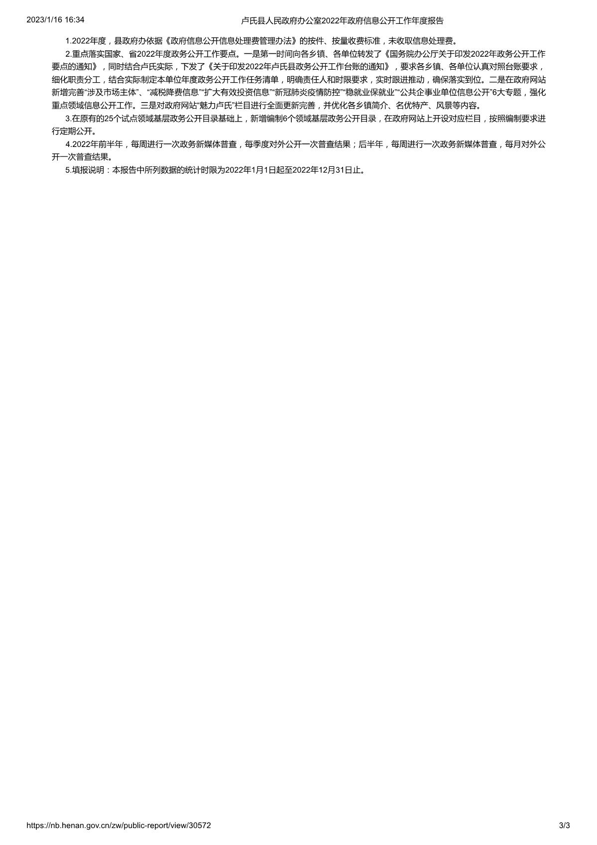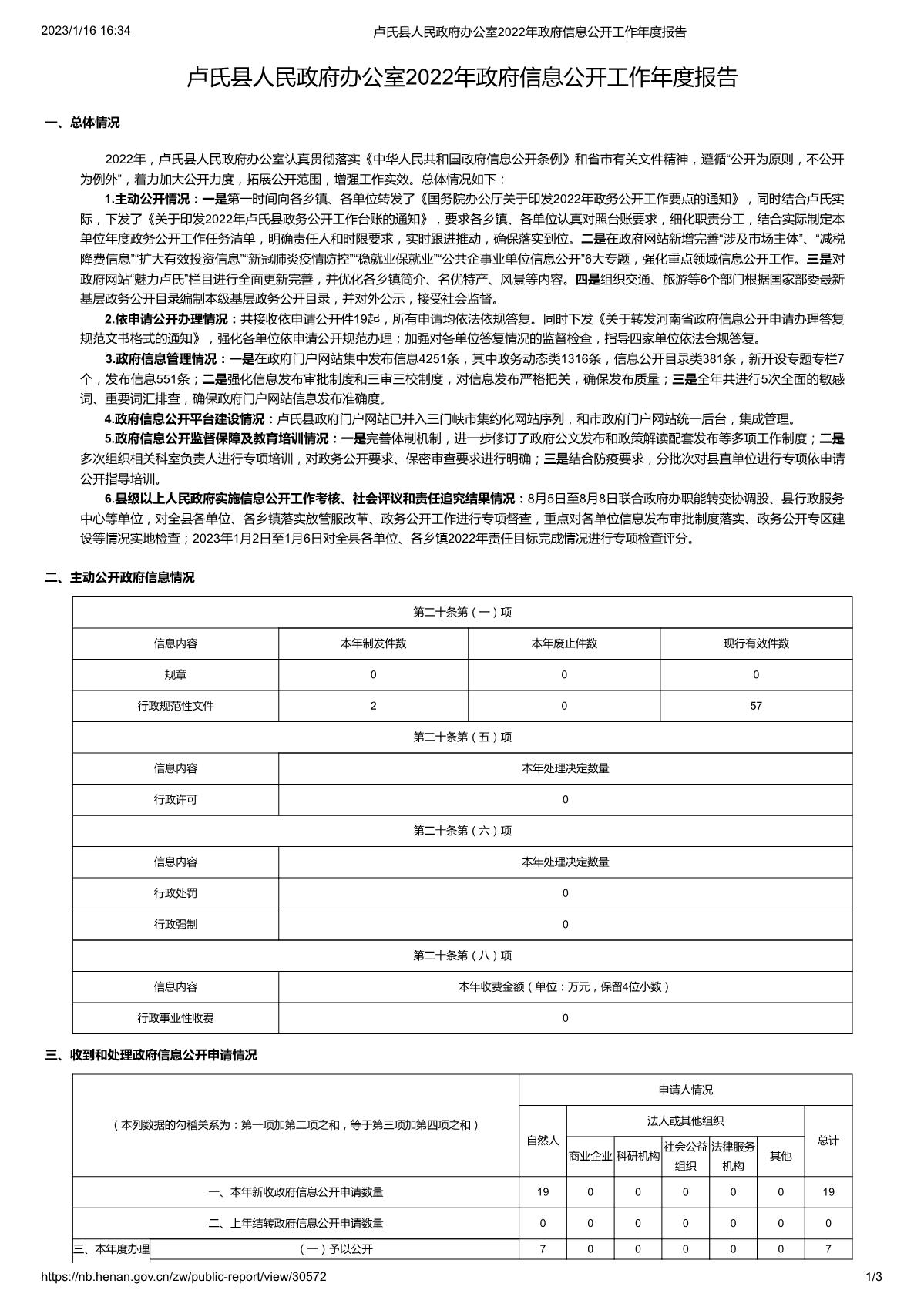 卢氏县人民政府办公室2022年政府信息公开工作年度报告
