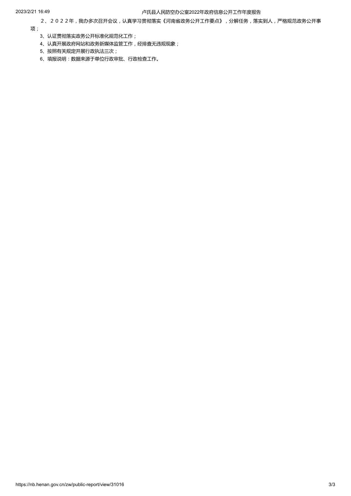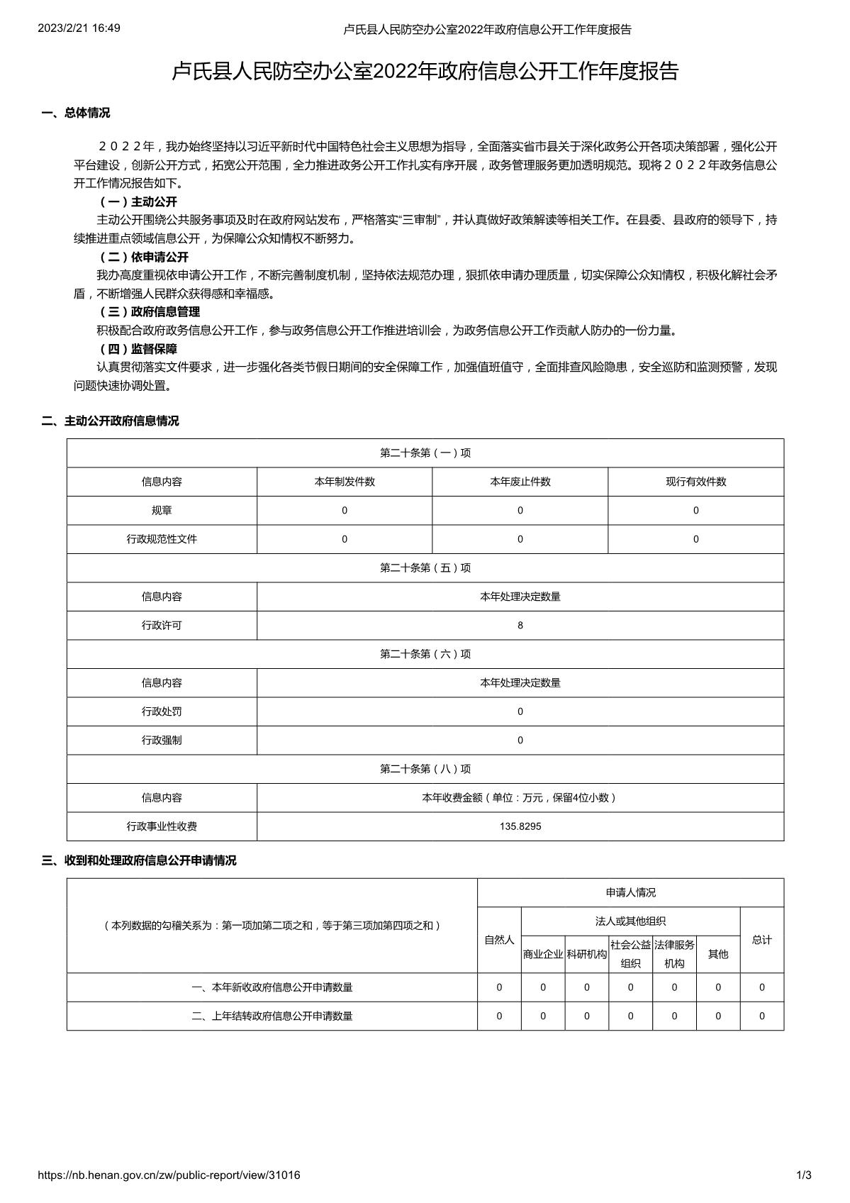 卢氏县人民防空办公室2022年政府信息公开工作年度报告