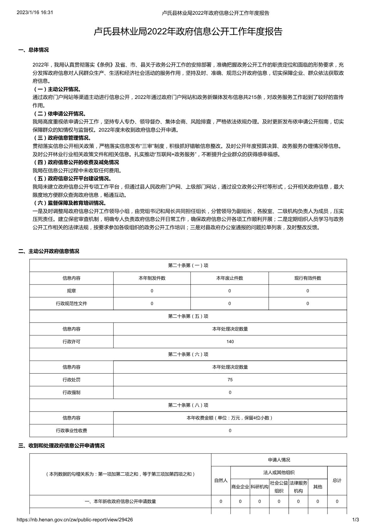 卢氏县林业局2022年政府信息公开工作年度报告