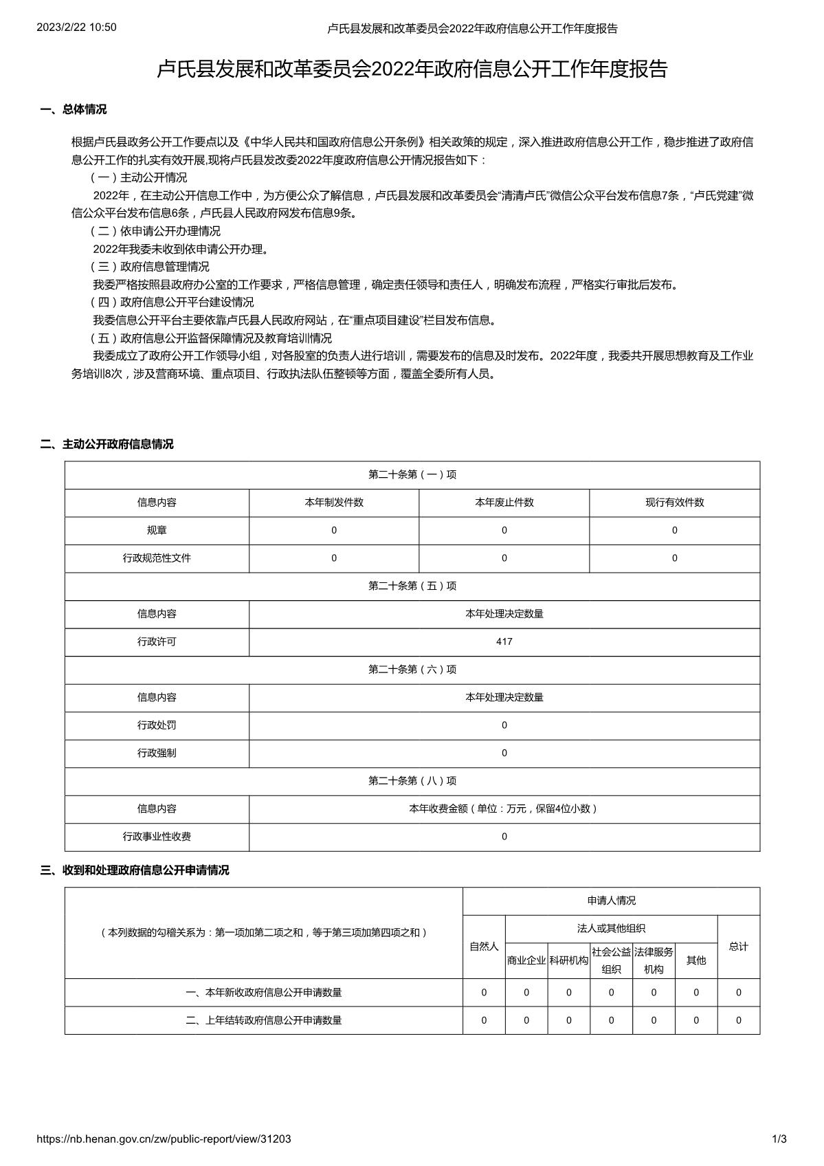 卢氏县发展和改革委员会2022年政府信息公开工作年度报告