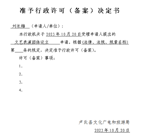 文艺表演团体设立申请